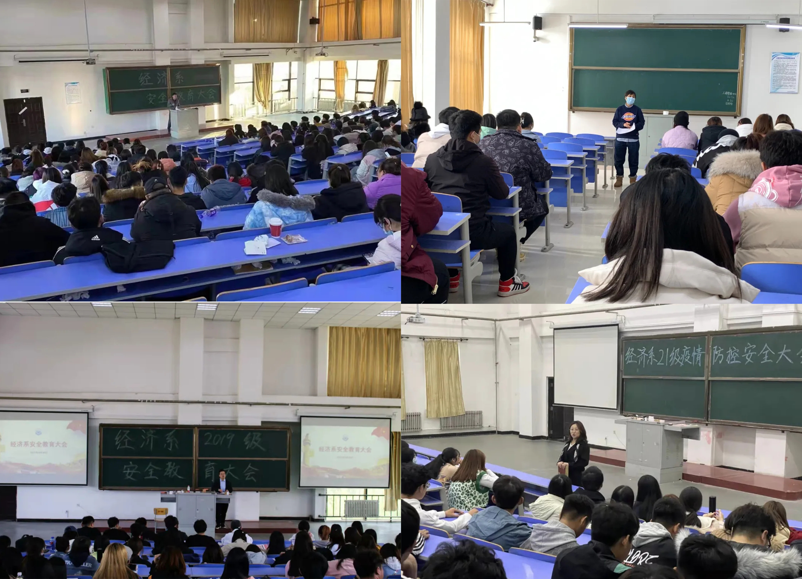 【学团】11月中旬,经济系各年级辅导员陆续开展安全教育大会。班会以疫情防控为主要内容,辅导员指出各班级学生应严格遵守学校疫情防控的各种措施,积极配合,以身作则,强化疫情防控意识,积极构建平安和谐校园。同时,各年级辅导员还强调学生要提高寝室用电安全、食品安全、防诈骗信息安全等相关内容。(根据经济系供稿修改 通讯员:黎明东)