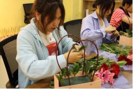 图为 劳动教育实践——插花品香活动