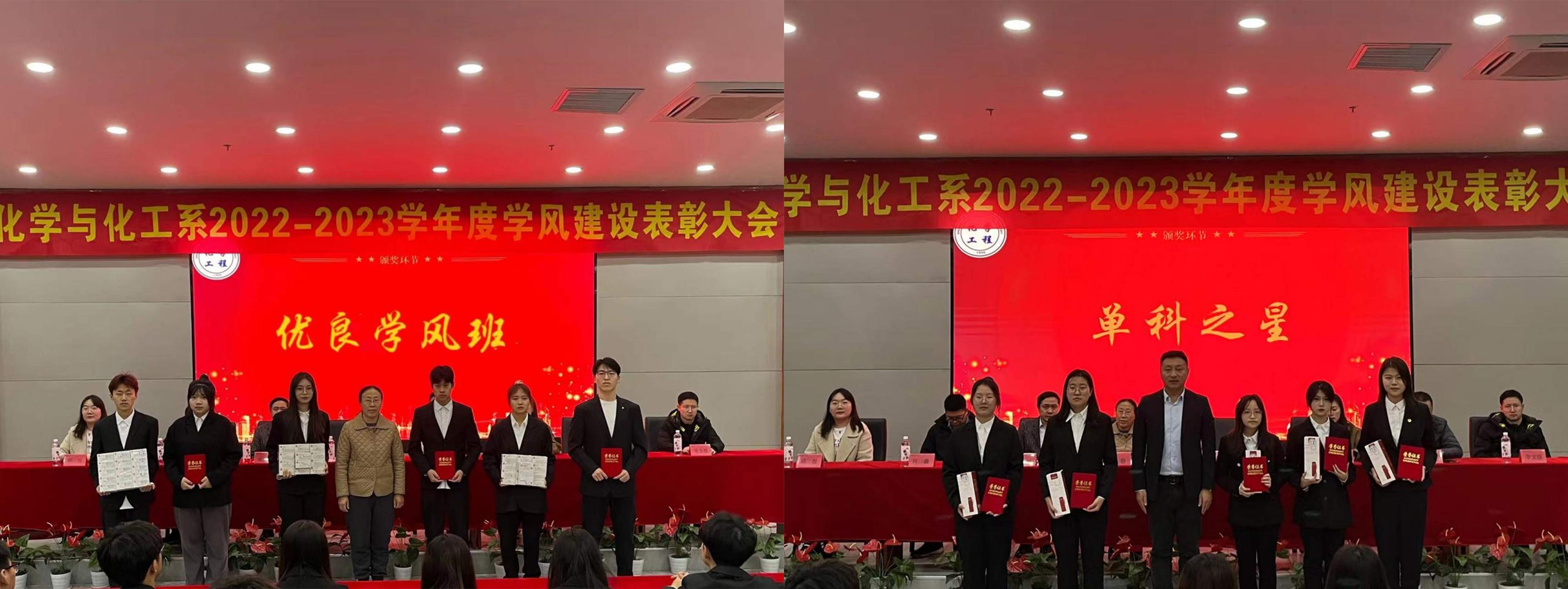 为树立学习榜样,营造良好学习氛围,11月21日下午,化学与化工系举行了“青春力量 优秀领航”2022-2023学年度学风建设表彰大会,对在学风建设中表现突出的先进典型和优秀代表进行表彰。化学与化工系领导班子成员、相关教研室主任和各年级辅导员出席了表彰大会。大会由学生会执行主席曹洋主持。