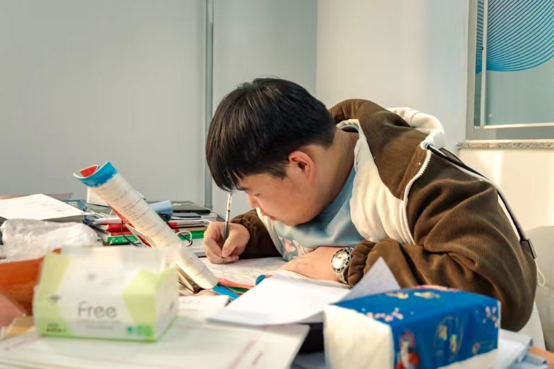 少年的书桌上,从来没有虚度的光阴。密密麻麻的笔记、厚厚一沓的书籍、热气腾腾的水杯,还有沈科考研人冥思苦想、奋笔疾书的背影。此时此刻,书桌承载的是考研人对未来的期待,笔与纸摩擦碰撞出的是沈科考研人不虚度的时光。