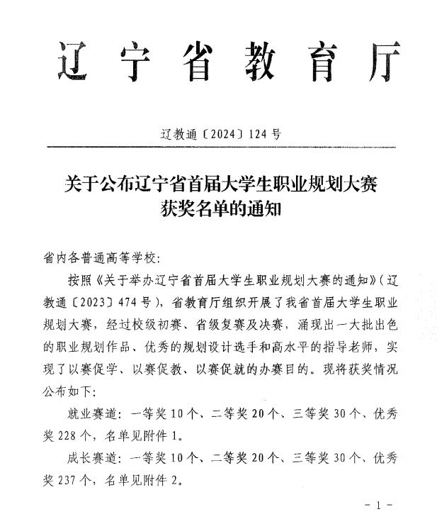 为进一步加强职业发展与就业指导课程体系和教师队伍建设,不断提高职业发展与就业指导教育教学质量,促进学生全面成长成才、顺利就业,辽宁省教育厅组织开展了首届大学生职业规划大赛。